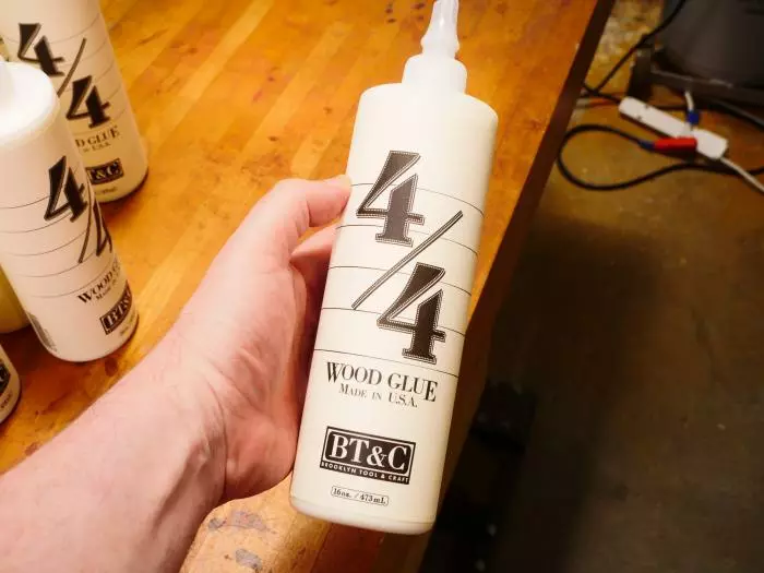 - Easy clean up. 4/4 wood glue is thinner and easier to spread than most of its competition. Applying a thin layer is much easier — and so is clean up. A wet rag will clean up most of the glue.