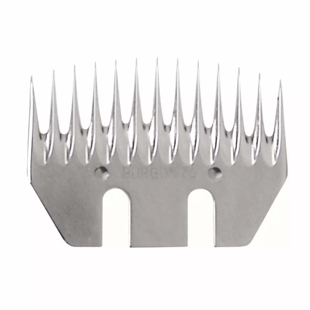 [/description][trade-description]Excellent dagging comb, suitable for any level of shearing experience.. Each piece is heat treated to the optimum hardness to ensure a longer lasting cutting edge, without the brittleness that results in broken teeth. All combs are balanced and precision hand finished so less ‘experting’ is required.76mm wide, short bevel. Pack of 5.