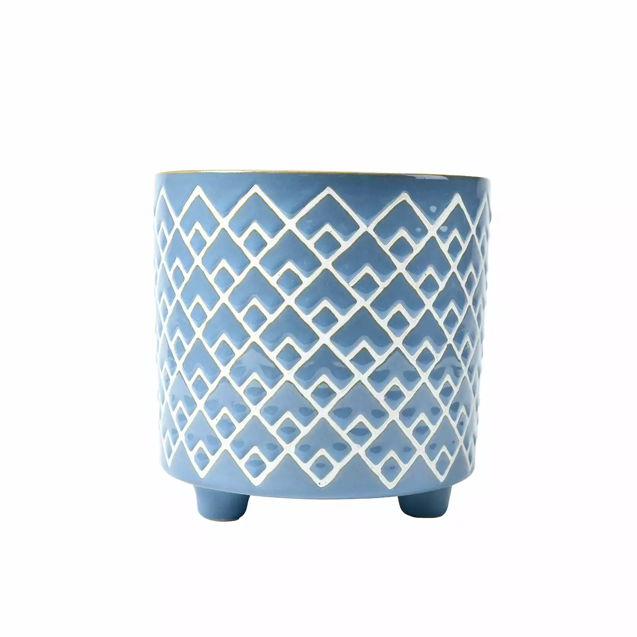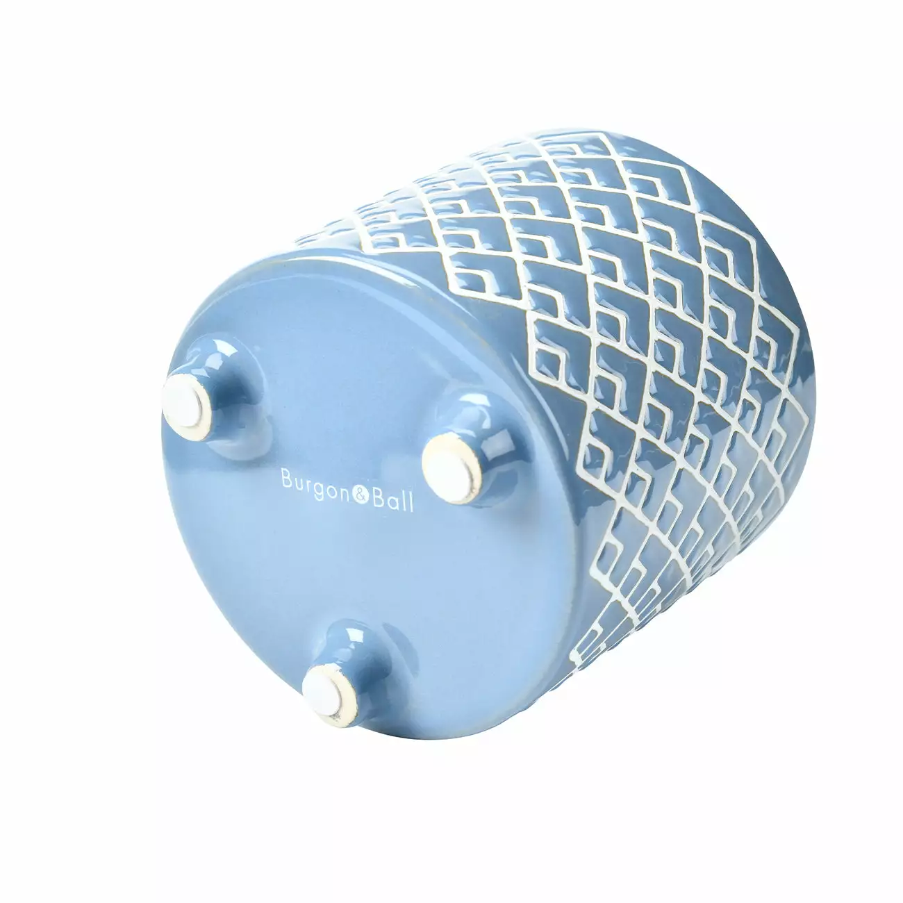 This eye-catching footed pot makes a bold statement, as the contrasting colours and textures of the Bilbao design are especially striking in this blue option. To protect your furniture, there are foam pads underneath the feet.