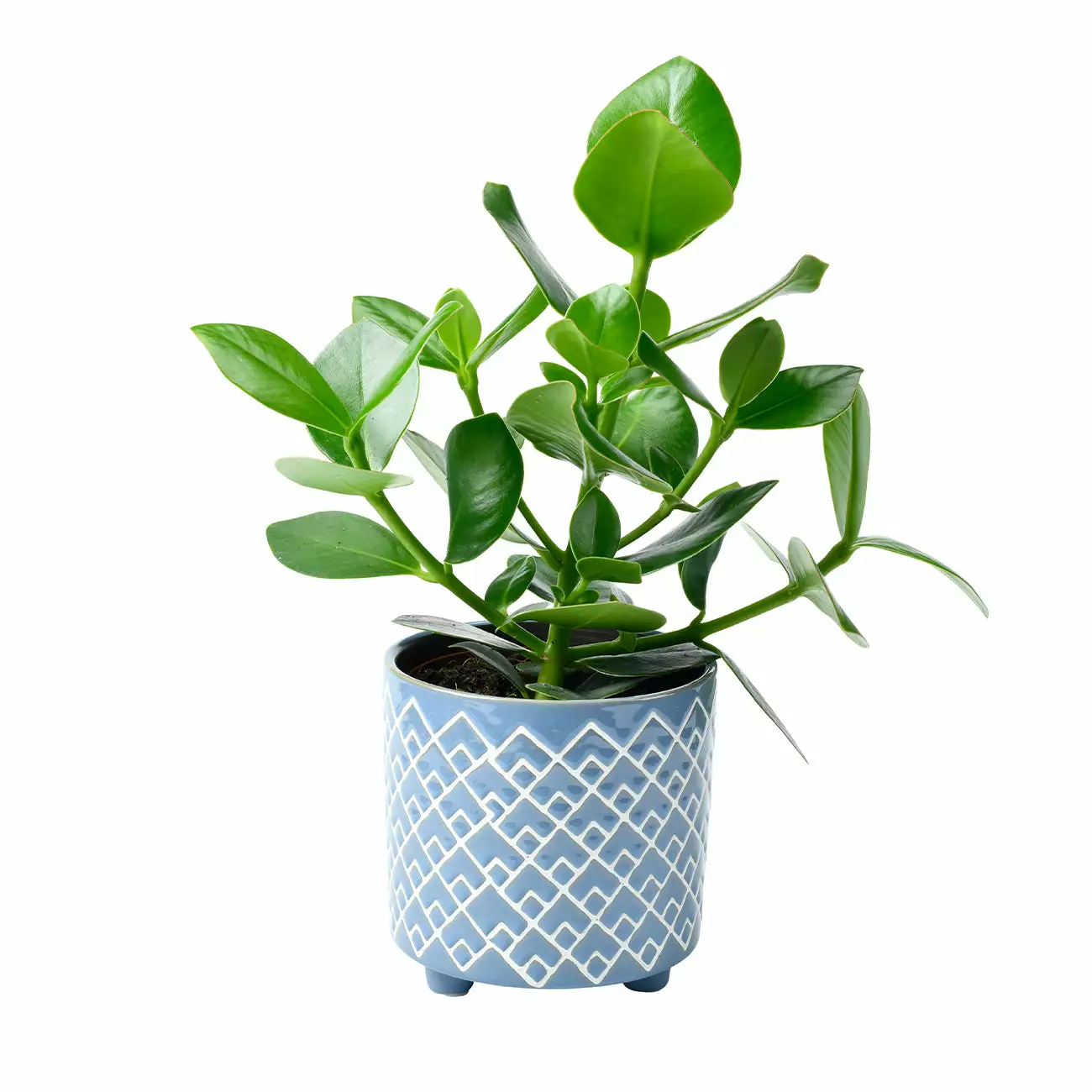This 14cm diameter blue Bilbao plant pot is also available in a 10.5cm smaller version, and in a pale jade shade, in both large and small sizes.