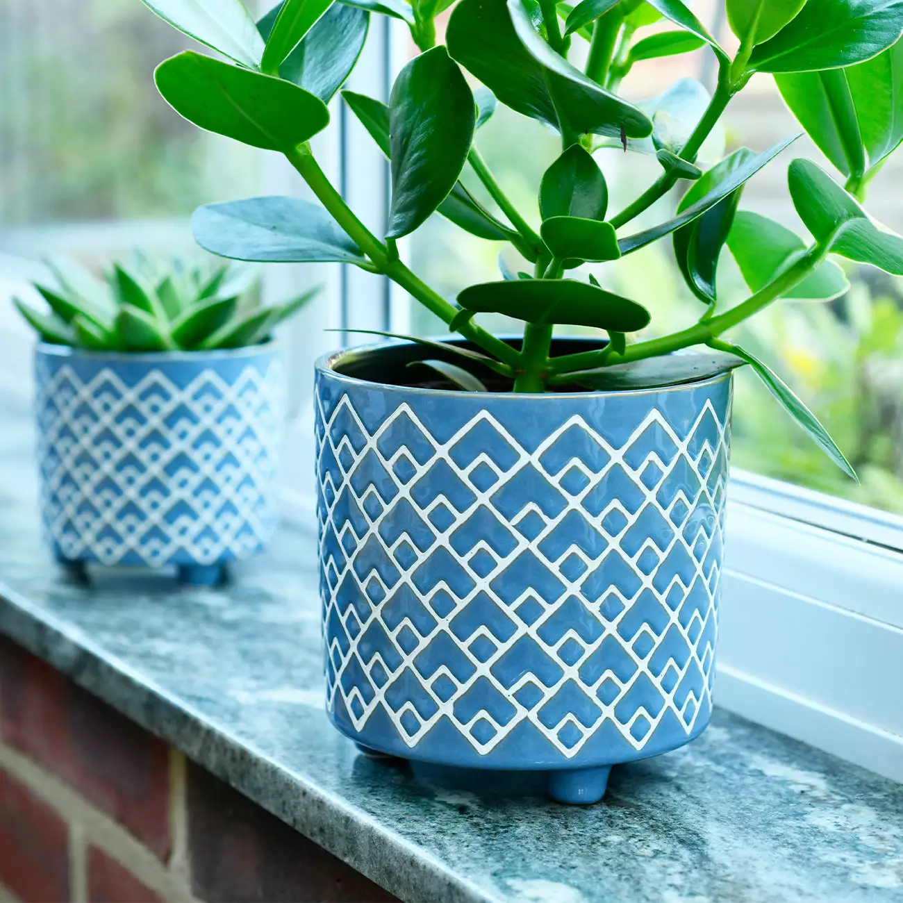 Strikingly contemporary, the Bilbao indoor plant pot features an on-trend geometric look. The design’s strong diagonals are picked out in white from the glazed background, lending a tactile texture and mesmerising pattern to this uniquely stylish planter.
