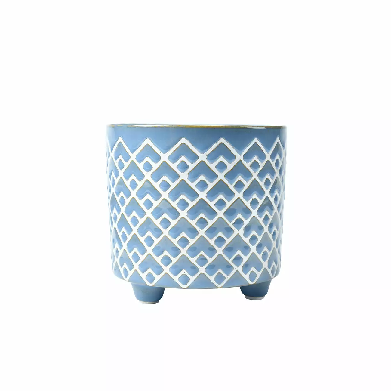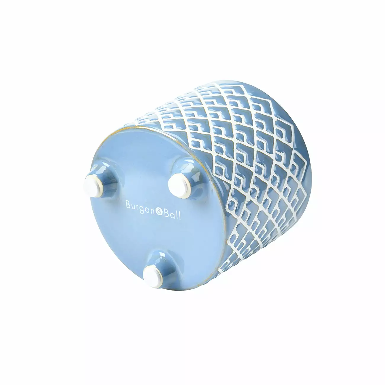 This eye-catching footed pot makes a bold statement, as the contrasting colours and textures of the Bilbao design are especially striking in this blue option. To protect your furniture, there are foam pads underneath the feet.