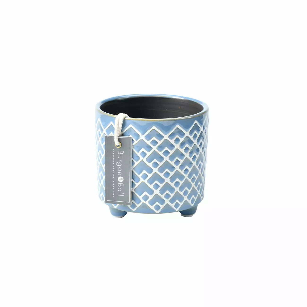 This 10.5cm diameter blue Bilbao plant pot is also available in a 14cm larger version, and in a pale jade shade, in both in both large and small sizes.
