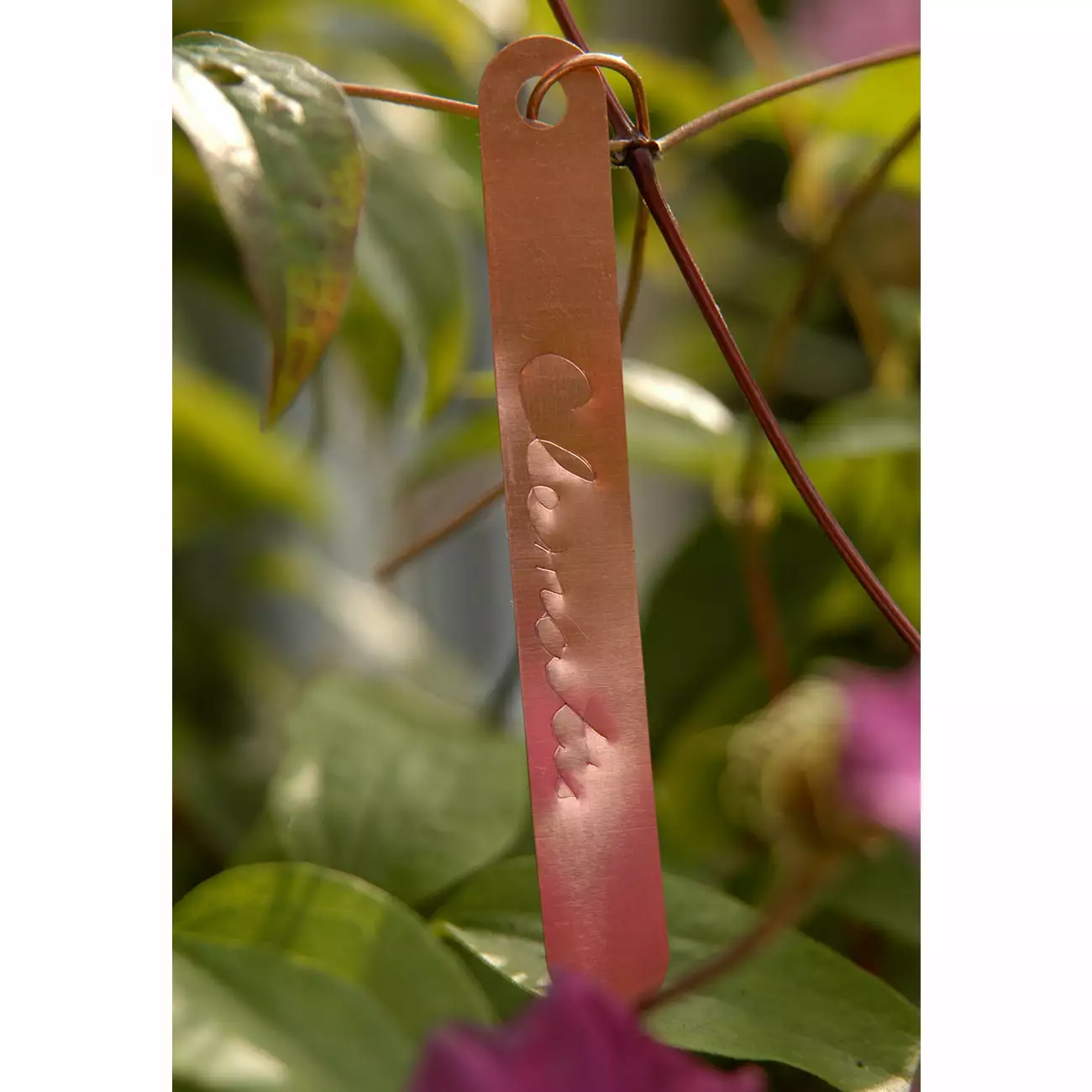[/description][trade-description]10cm copper tie-on labels with copper wire for hanging.Engrave/indent plant names onto the label with a ball point pen to create a permanent record that will never fade, only weather gracefully.