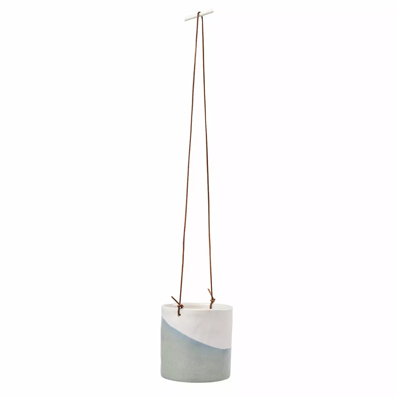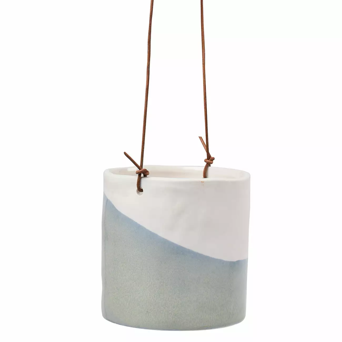This gorgeous hanging pot, with its hand crafted feel, has a beautiful blue/grey dip-glaze on the lower half.