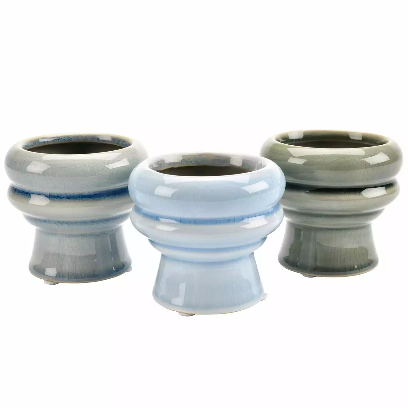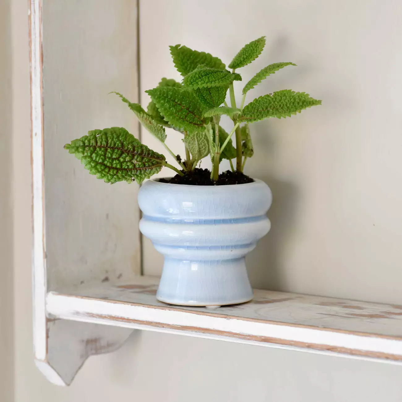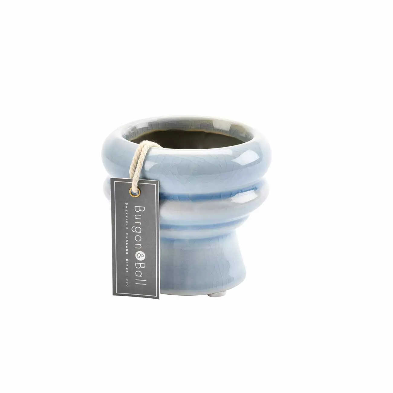 A subtle colour wash in a light blue shade adds interest, becoming more intense where it collects in the ridges of the design. An understated crackle glaze brings a sophisticated finishing touch. The pot has foam pads on the base to protect your furniture.