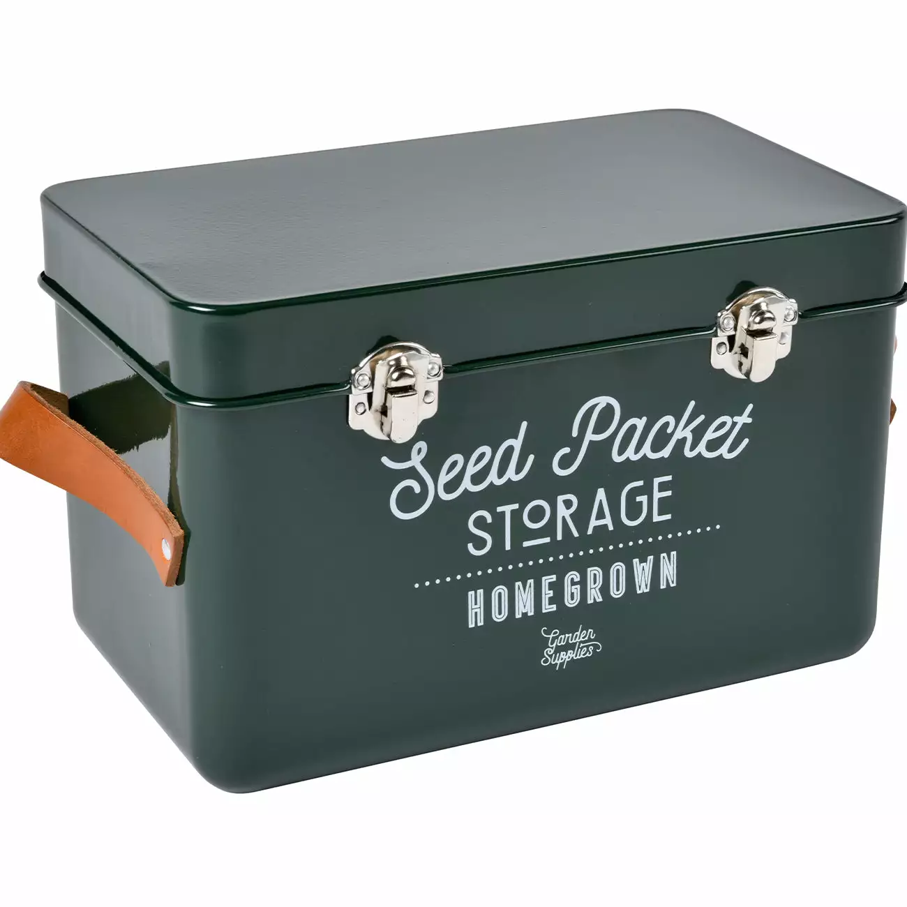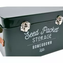 [/description][trade-description]This beautifully-designed storage tin is perfect for collecting, storing and organising your seed packets.This handsome storage tin has been designed to look extremely stylish in home or shed. On-trend typography and natural leather handles at either side give this tin a really distinctive look. Elegant curves have been created by a unique moulding process, for a flawless, seam-free finish. The result is irresistibly tactile, with a very contemporary feel.