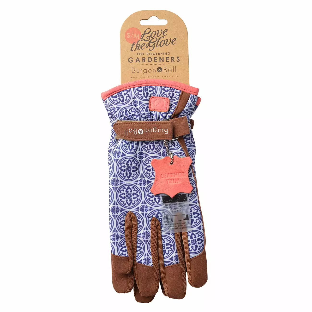 [/description][trade-description]Combining fashion with function, our Love The Glove women’s gardening gloves bring a touch of style to the garden, with a host of technical design features to enhance performance.These ultra-soft gloves have been created in hardwearing fabric that doesn’t stiffen when it gets wet. The padded palm gives extra cushioning to protect hands during tough or repetitive tasks, and there’s two-way stretch mesh between the fingers to keep hands cool and improve dexterity. A wrist strap ensures a snug fit and stops debris dropping into glove, with a hook-and-loop fastening that’s easy to open and close.