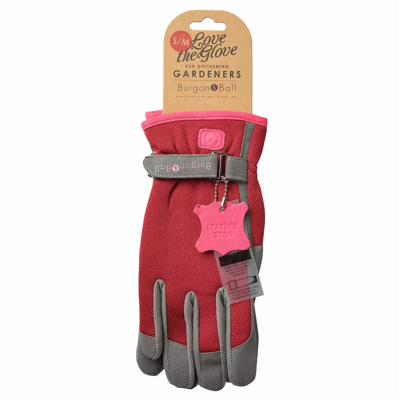 [/description][trade-description]Combining fashion with function, our Love The Glove women’s gardening gloves bring a touch of style to the garden, with a host of technical design features to enhance performance.These ultra-soft gloves have been created in hardwearing fabric that doesn’t stiffen when it gets wet. The padded palm gives extra cushioning to protect hands during tough or repetitive tasks, and there’s two-way stretch mesh between the fingers to keep hands cool and improve dexterity. A wrist strap ensures a snug fit and stops debris dropping into glove, with a hook-and-loop fastening that’s easy to open and close.