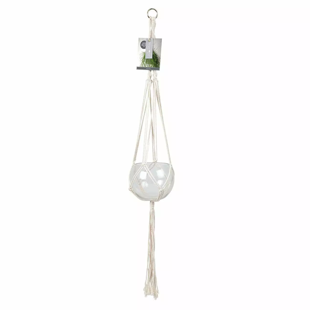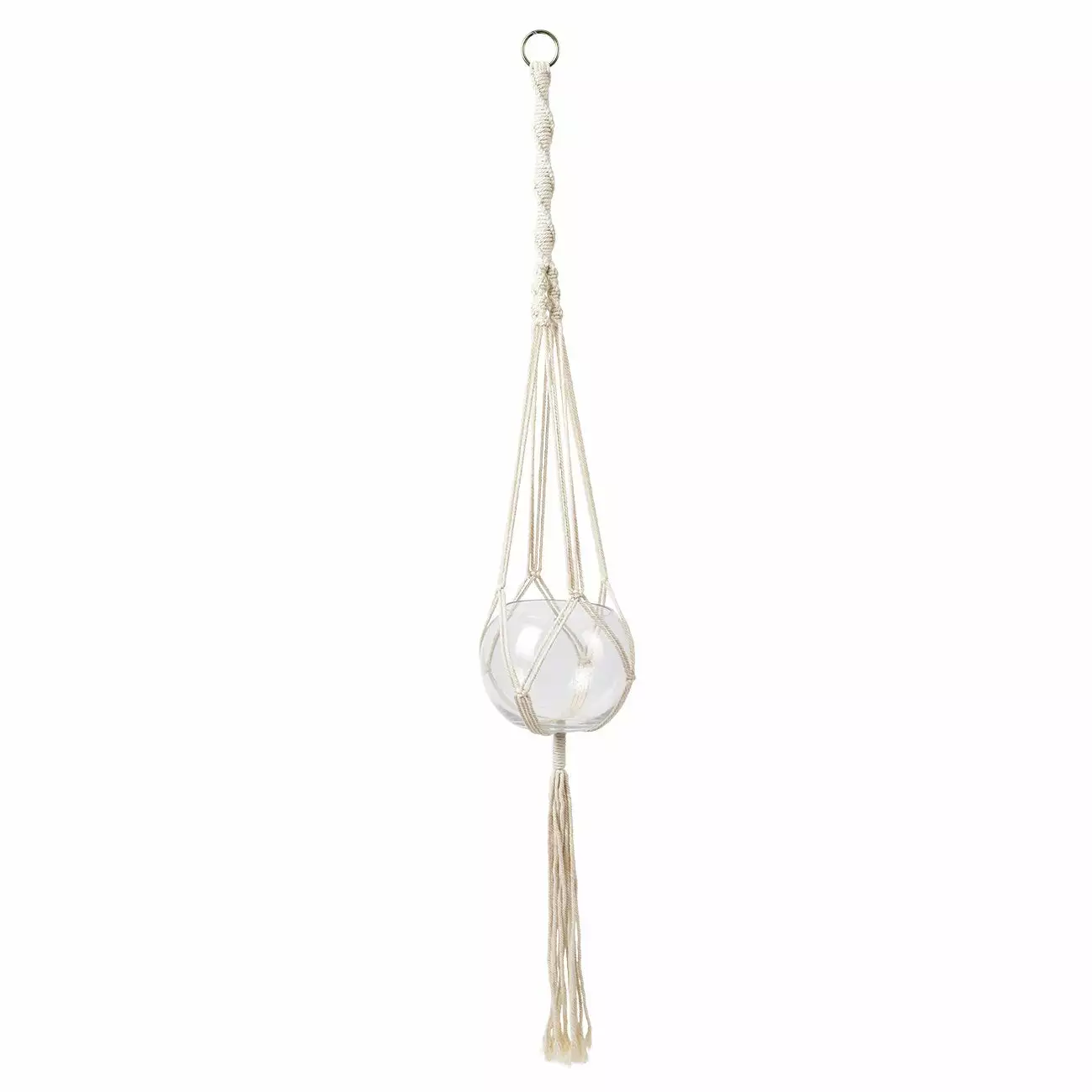 A sturdy metal ring keeps the hanger securely in place. The glass pot is not included; it’s for illustrative purposes only.