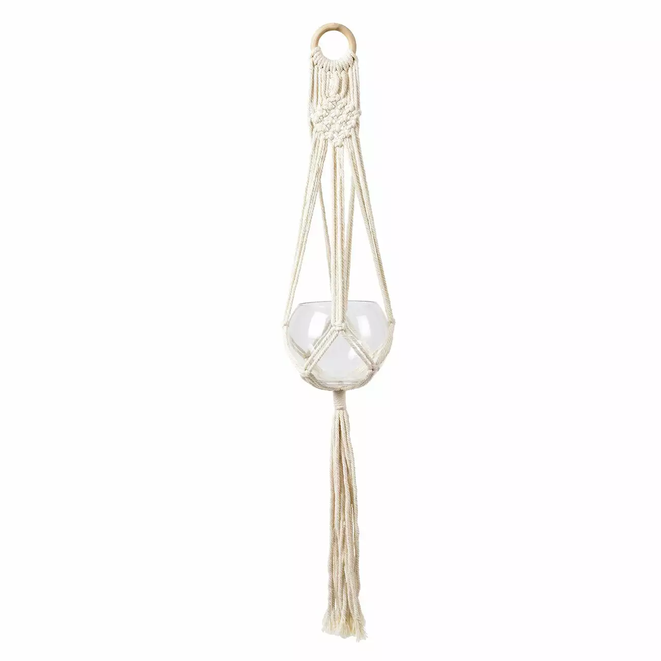 A sturdy metal ring keeps the hanger securely in place. The glass pot is not included; it’s for illustrative purposes only.