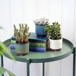This subtly stylish collection of indoor plant pots feature an understated speckled glaze, in soft shades of blue, green and cream to evoke the happy hazy days of summer at the coast. The Malibu succulent pot is available in a choice of three colours; green, blue and cream. Each stoneware pot is raised on a faux ‘stand’ in a contrast colour to lift the design out of the ordinary.
