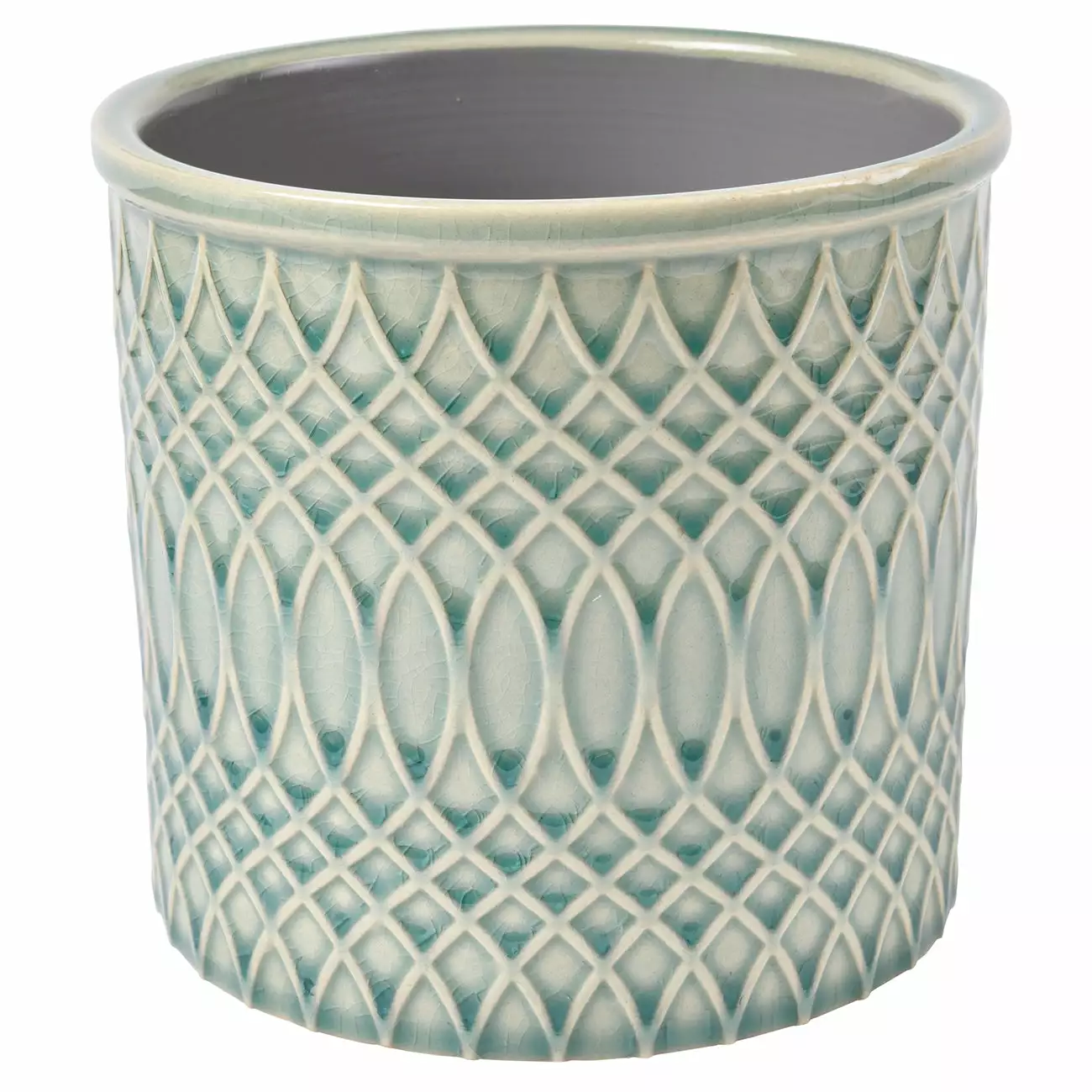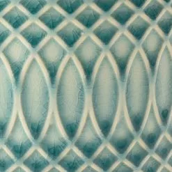 This Morocco pot in a beautiful soft celadon shade features a mesmerising raised geometric pattern. The subtle ridges hold the glaze during firing to create the varying colour intensities to enhance the curves of the design, for a very distinctive finish.