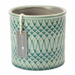 [/description][trade-description]If, like us, you’ve embraced the obsession with indoor plants and have a home full of gorgeous greenery, you’ll need some stylish indoor pots to display your prized plants to their best advantage.This Morocco pot in a beautiful soft celadon shade features a mesmerising raised geometric pattern. The subtle ridges hold the glaze during firing to create the varying colour intensities to enhance the curves of the design, for a very distinctive finish.