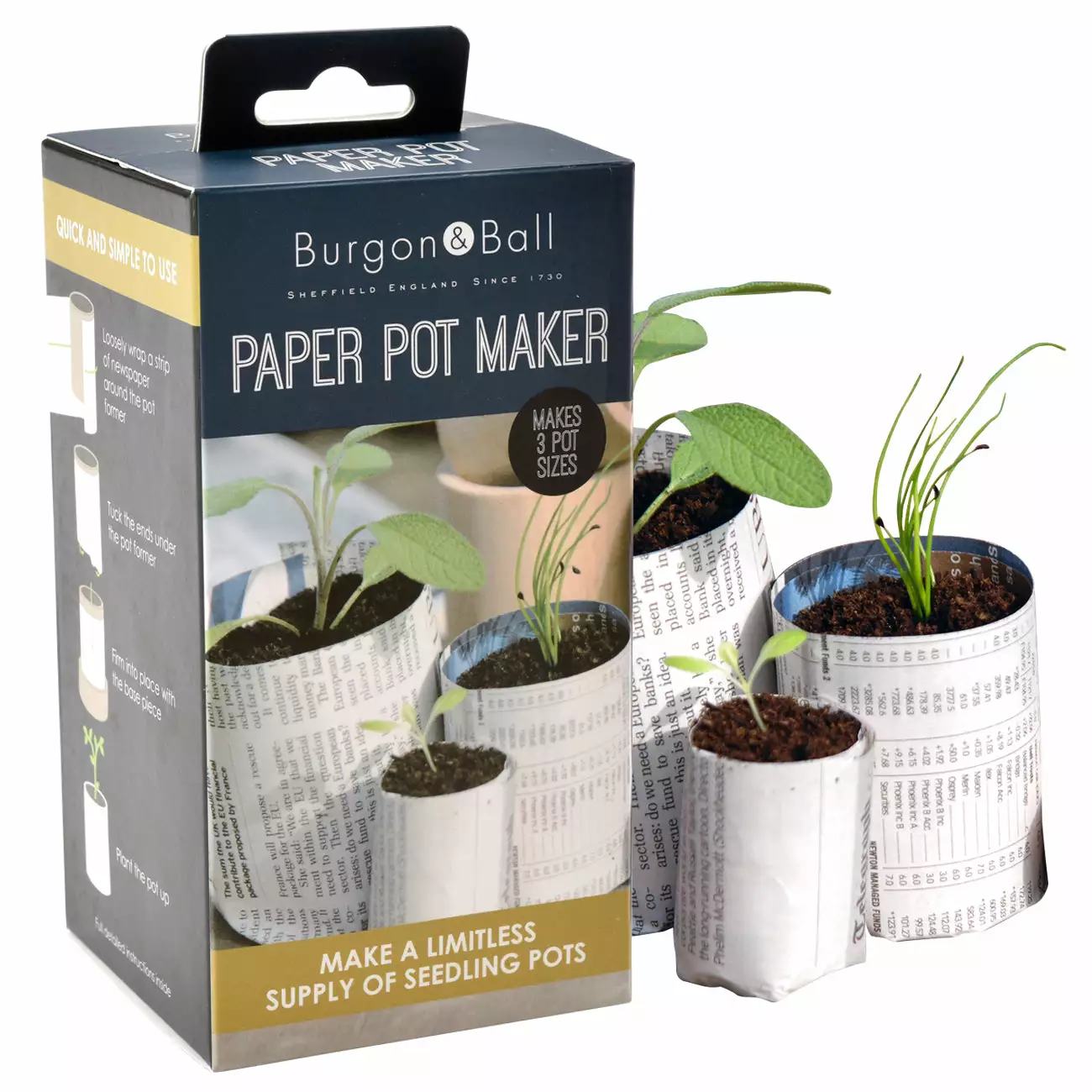 [/description][trade-description]This simple pot-making kit allows you to make your own seedling pots from nothing more than recycled newspapers! You can create an endless supply of sturdy but biodegradable pots for seeds, seedlings and young plants.