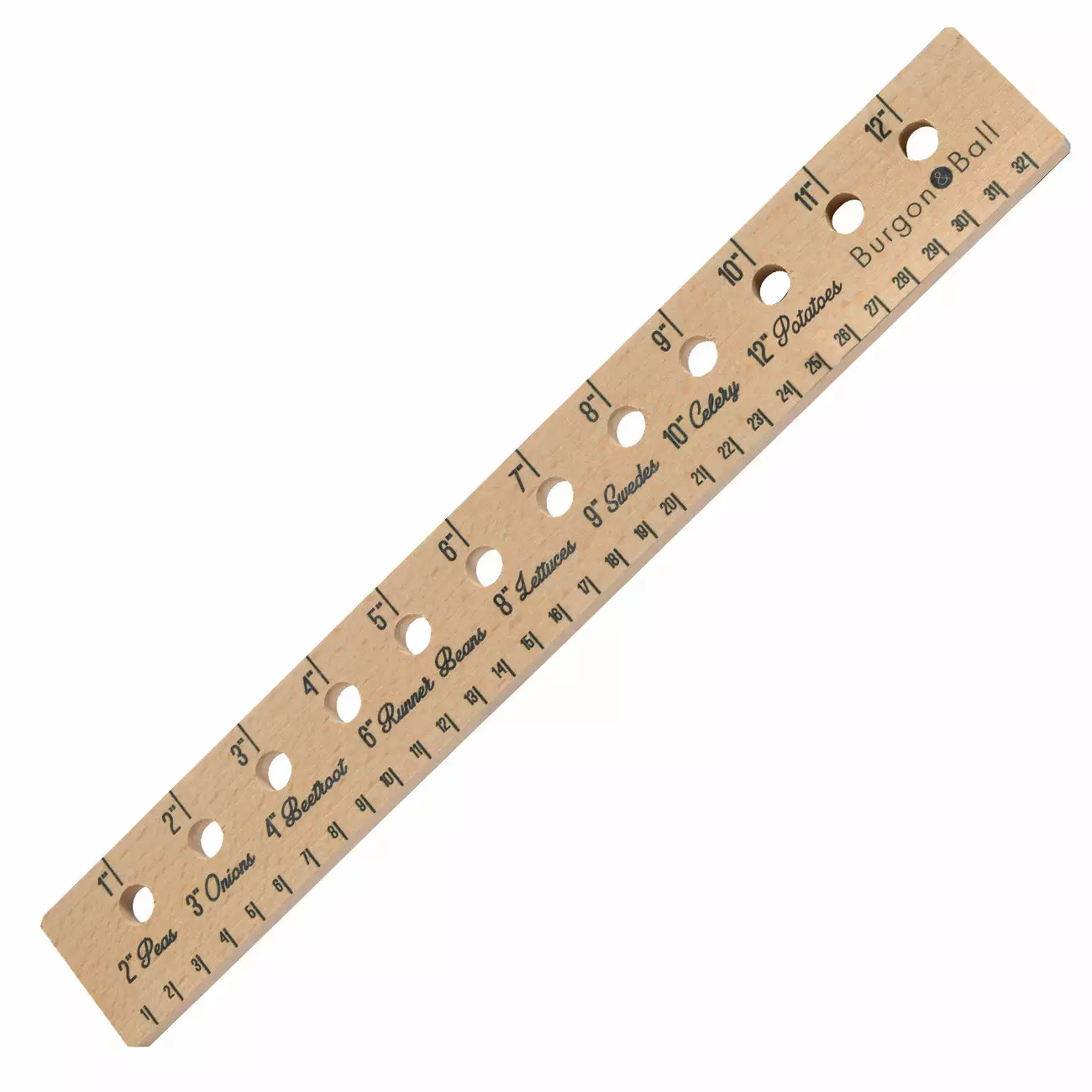 [/description][trade-description]Amazingly handy ruler with seed sowing holes, metric and imperial graduations plus printed vegetable spacing guide.Made out of FSC certified beech.