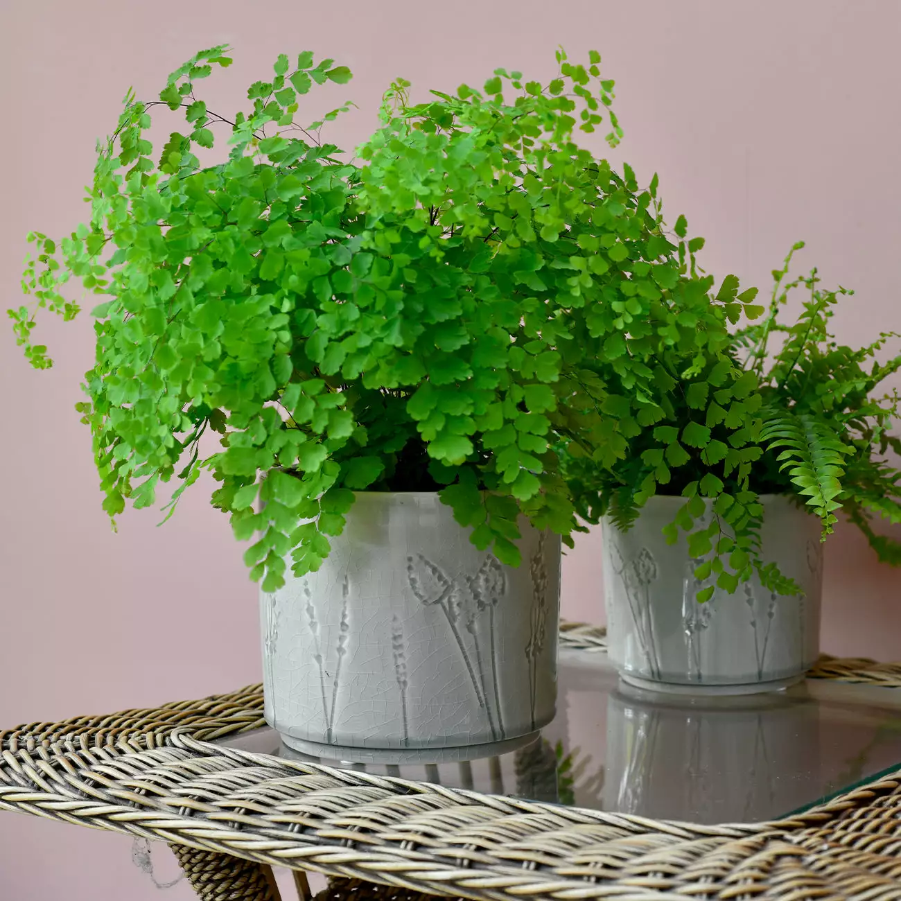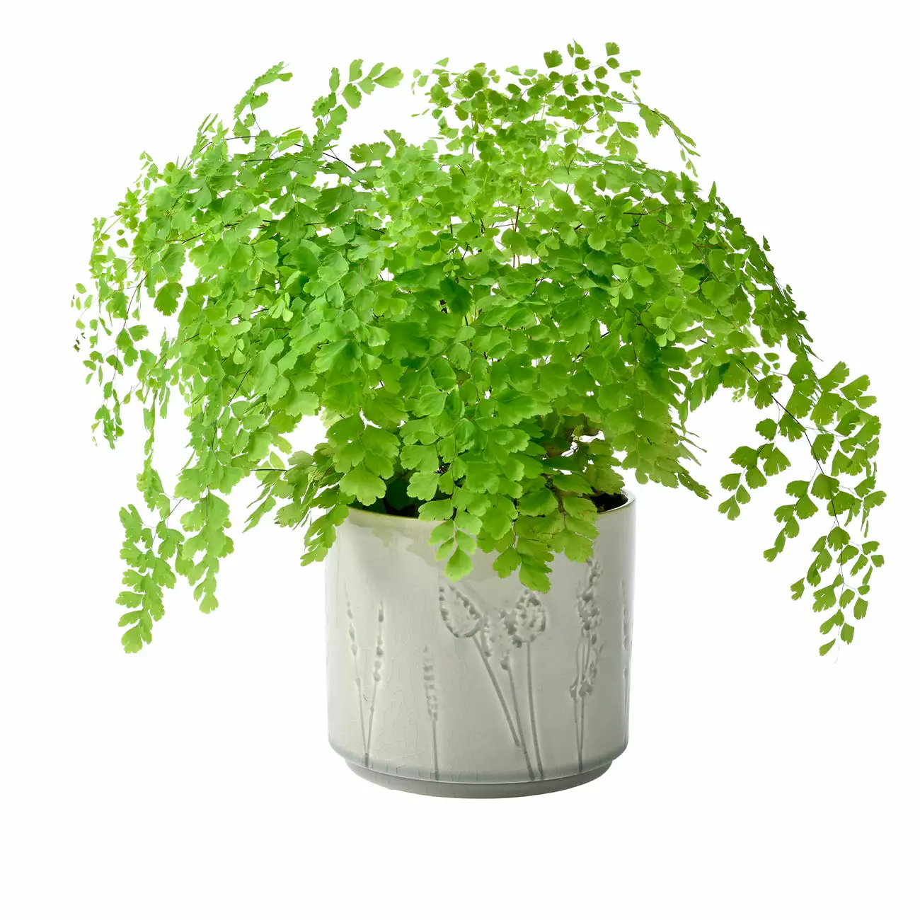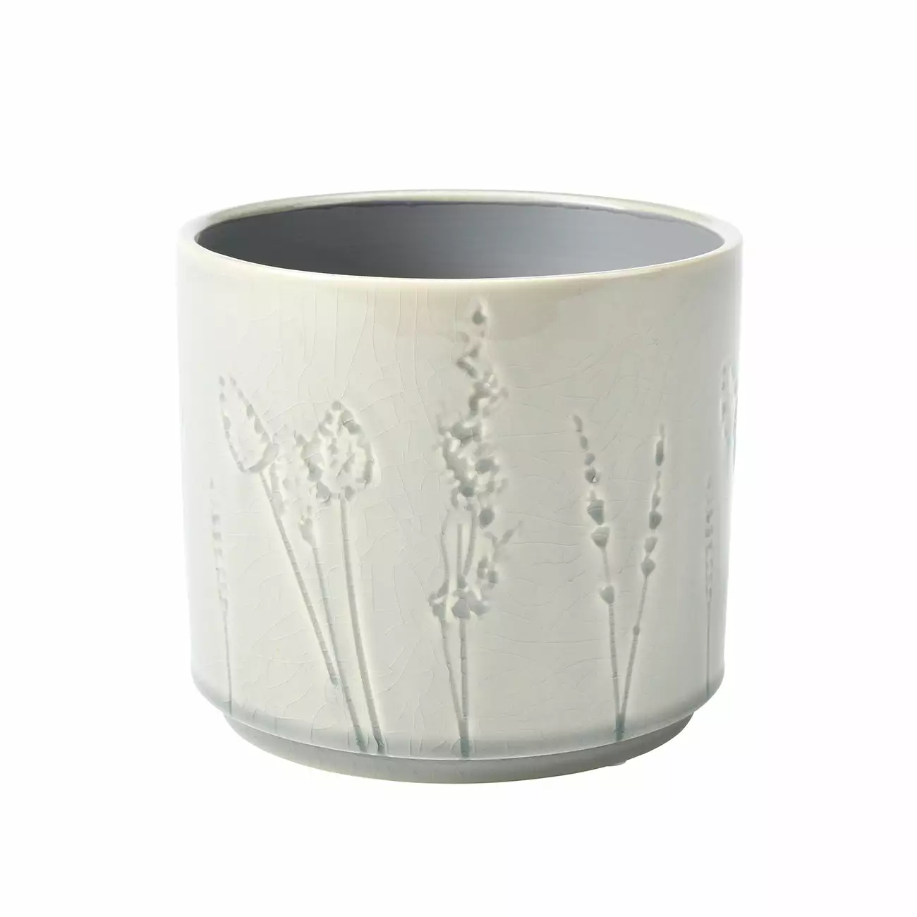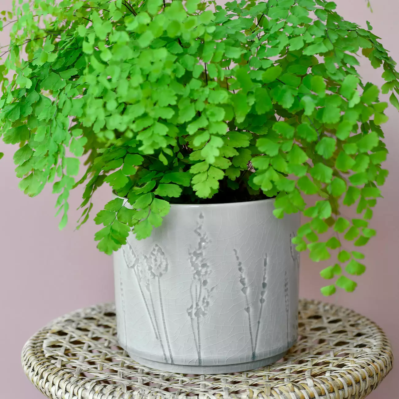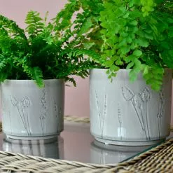 This charming design picks up on the ongoing trend for bringing the outdoors into the home and for all things natural. It features debossed impressions of grasses and flowers in a loose, sketchy style, giving a delightful artisanal look. A go-anywhere soft grey crackle glaze pools in the design, building depth of colour to highlight the delicate silhouettes.