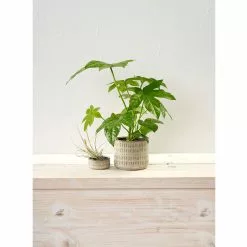 [/description][trade-description]Air plants are the ideal plants for 21st century living. Needing little watering and not even any soil, they have a fascinating sculputural quality – and this little air plant dish is the perfect way to display them to perfection.This San Francisco air plant dish captures perfectly the Boho Eclectic look. Based on the trend for everything vintage, this style evokes the heady days of the Woodstock era. The San Francisco design used raised dots and dashes to lift the pattern from the subtle finely-speckled glaze. The neutral grey shades temper the densely-textured design, so it complements every style of home décor.