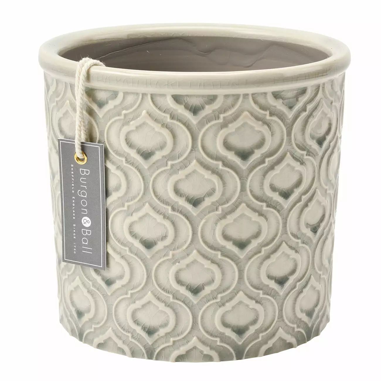 The Venetian indoor pot offers a subtle yet very striking design. In a soft grey, the contrast of rich pattern with neutral colour makes a design statement in both contemporary and more classic interiors.