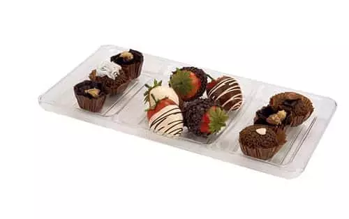 Candy Display Tray with 3 compartments. This tray is great for samples, hor dourves, display varieties or inside a display case.