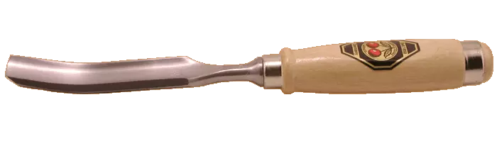 We have listed these gouges in both the specialist chisel department and our carving department because they are style of gouge that is perfect for the cabinetmaker who has occasional need for a strong gouge when carving details on casework. But general carvers will also appreciate these fine quality hand forged gouges with their extra-strong, double-hooped handles. The bevel is ground on the outside of the blade. Overall lengths of approximately nine to eleven inches. Made in Germany.
