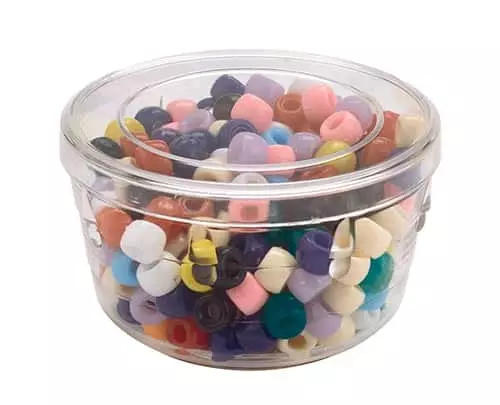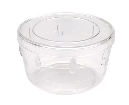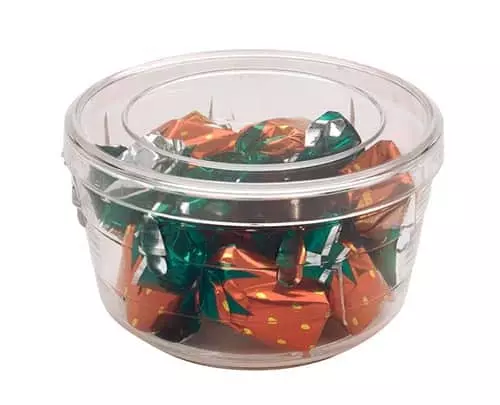 This extra small round decorative crystal clear container with an overfit lid has a capacity of 7 oz. It’s made of high quality, food-grade polystyrene. They are useful for sustainable packaging, lab supplies, candy packaging, kitchen & food storage, food service, science & education, or agriculture & research.