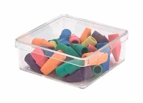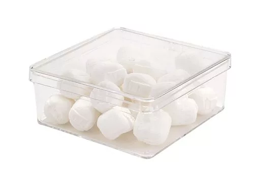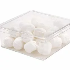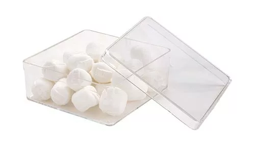 This square clear container with an overfit lid has a capacity of 5 oz and is made of high-quality food-grade polystyrene. Uses for this clear plastic box are candy packaging, honey, nuts, dried fruit, sustainable packaging, lab supplies, science & education, agricultural & research, jewelry display, or small crafting items. This plastic box is sold blank, but a variety of custom imprint options are available.