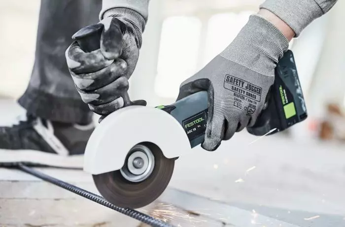 First, Festool puts a premium on dust resistance. The brushless motor and cast electronics are safely enclosed and protected against dust. Next, your comfort is protected with the Grinder’s ergonomic, feel-good-in-the-hand and vibration minimizing design. Operation is quick and easy with a keyless arbor, variable speed control – stepless adjustable speed of 4500-8500 rpm – and tool-free guard change and positioning. The tool’s unique battery position for cut-off operation further protects your Grinder’s operation. Finally, the lockable spindle and quick action clamping nut allow fast disc changes without the need for tools.