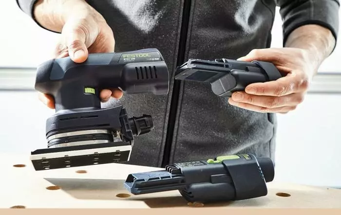 The sander comes in three versions – The Basic if you already own Ergo batteries and a charger. The Plus which has batteries and a charger too. This is the most popular package. And The Set, which includes batteries and a charger but also includes a cord and an adapter so that you can plug the sander into an outlet for jobs where portability isn’t needed. Details below.