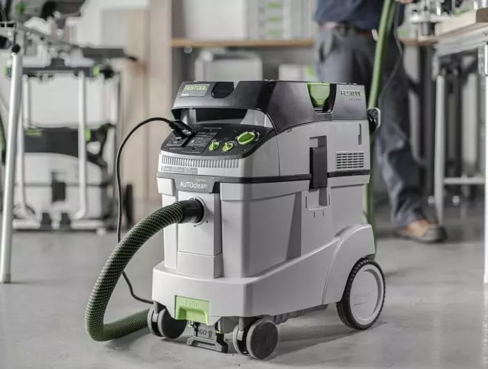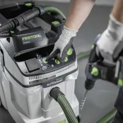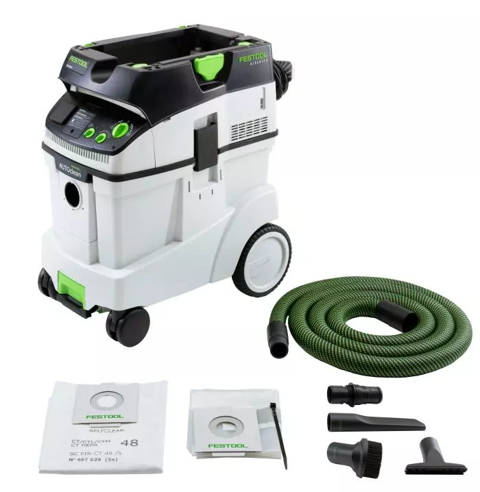 The CT 48 E HEPA AC combines the best of the giant CT 48 – Festool’s largest, most powerful dust extractors, suitable for the toughest, filthiest jobs — with Festool’s Autoclean (AC) feature, an automatic main filter cleaning that ensures continuously high suction power, previously available only in the CT 36 AC.