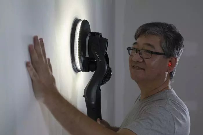 Being able to reach high spots means less fatigue, less moving around and fussing with ladders and set-up. You’ll also achieve a more balanced, finished surface all around. Adjust the suction and see how the Planex can hold its own weight against ceilings, which decreases the perceived weight of the machine and relieves the load on the arms and back.