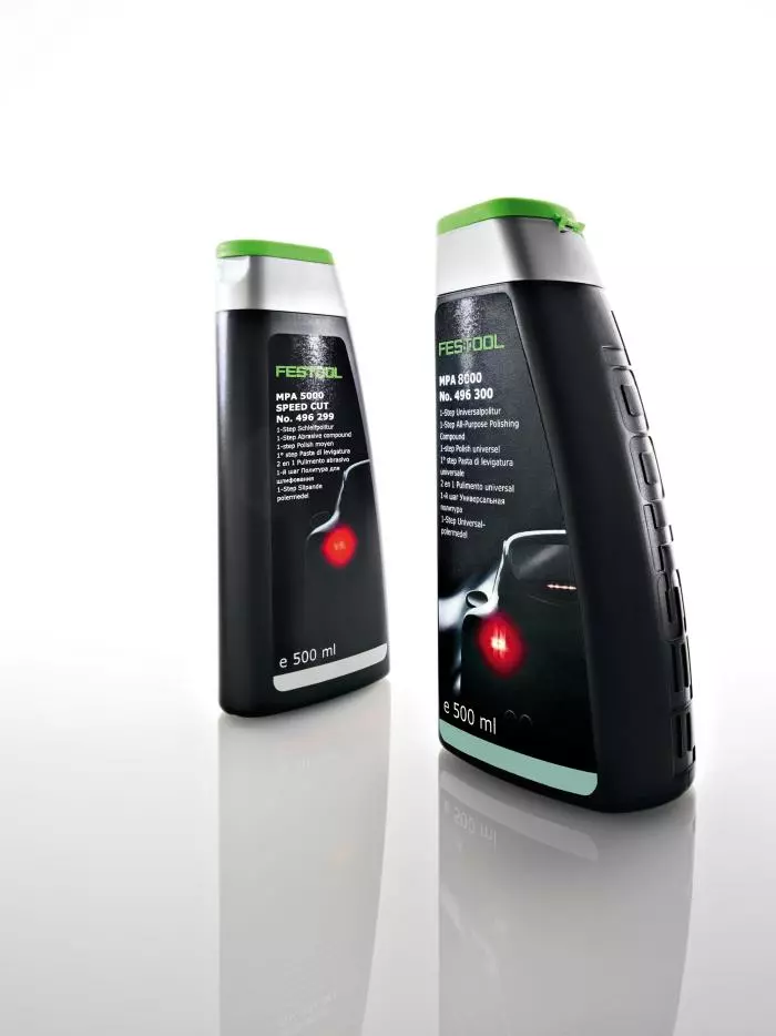 Festool also offers two related products, both offered in spray bottles: a water-based, non-silicone, shine-promoting Sealant that serves as the final step in the polishing process and protects and maintains the clear coat, and a Cleaner that removing polish residues and grease marks.