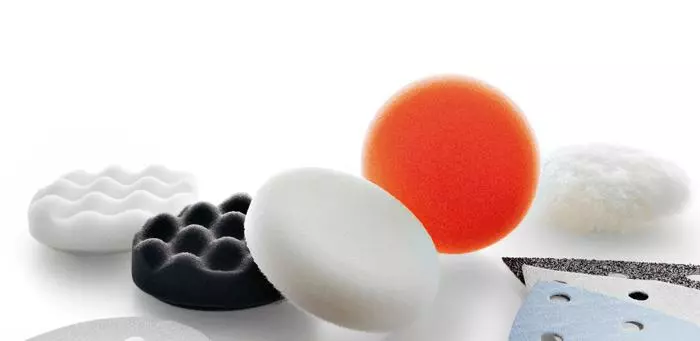 Choose from sponges and pads in a range of colors and materials corresponding to the polishing task, from preliminary polishing through buffing after finish is applied. If you are using Festool Polishing Compound, match the compound to the color of the sponge. (Note: sheepskin is for aggressive work – match it with MPA Speed Cut, not High Gloss.)