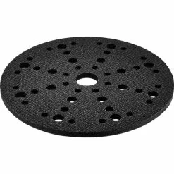 The sander features Festool’s customary design innovations, including the plug-it cord that enables you to use a single cord that is easily detached and plugged in from one Festool tool to another; a bumper guard so that you can sand up to adjacent surfaces without damaging either the work piece or your sanding pad; additional sanding pads (not included) for harder and softer backings that can be quickly changed (with no tools!) using the Rotex FastFix chuck system. The sanding disks all use standard hook and loop attachments. The secret to the near total dust extraction is a center “Jetstream” intake hole. The air circulation also keeps the sanding disk cool and with no dust buildup the sander will cut faster, cooler, cleaner, and disks will last longer.