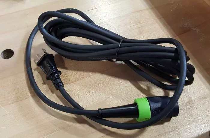 The cord, also known as a Plug-It cable, comes in two versions. One version is 18 gauge for all lower power tools (sanders, jigsaws, etc) and the other is 16 gauge for higher powered tools such as routers and panel saws. The thinner gauge cord is a little more flexible, which is nice on sanders.