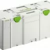 Systainer³ Organizer SYS3 ORG L 89 20xESB (#204856) includes the following 20 plastic organizing containers: 10 x plastic container 50 x 50 x 68; 6x plastic container 50 x 100 x 68; 2x plastic container 100 x 100 x 68; 1x plastic container 100 x 150 x 68; and 1 plastic container 150 x 150 x 68.