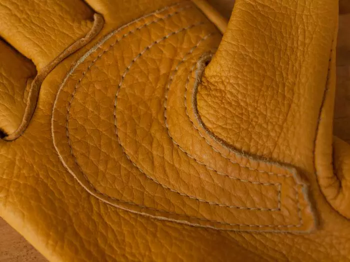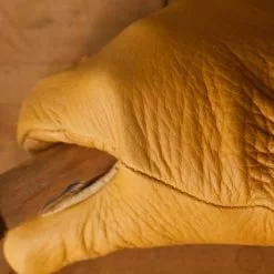 Geier builds the Bison Roper gloves from tannery run leather sourced exclusively from ranch raised American bison. The texture and grain of bison leather has distinctive character, and adds to the tough, western look of the gloves.
