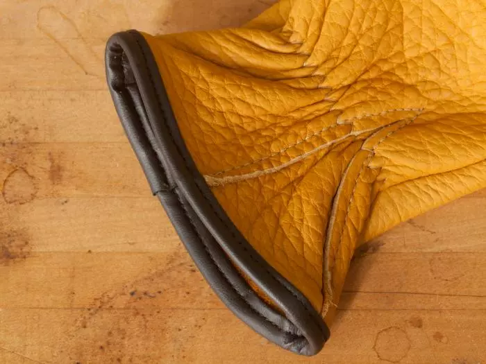 Reverse (Suede) leather will typically have numerous scars, marks and blemishes. For this reason, the leather is used flesh (suede) side out. Again, under no circumstances is the wearing quality, or durability of the glove compromised.