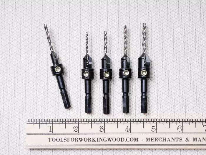 The MiS countersink with a Centrotec-compatible shank – drill your pilot hole and countersink in one motion, all using a Festool impact driver. Set the depth stop with the included allen key, so that you can drive a screw flush with the surface or counterbore to leave room for a plug. The 82° countersink is designed to match the head of most standard screws. See our Screw Size chart to match screw to countersink.