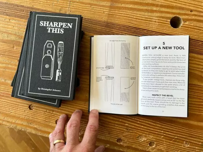 In this charming small book, Chris has distilled the latest wisdom and put it in an eminently readable and portable book. It’s small (120 pages in a pocket-sized format) but mighty, with text and pictures that show you how to get sharp edges efficiency with a minimum of equipment and fuss.