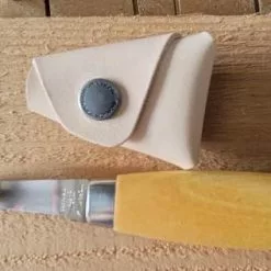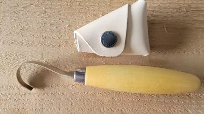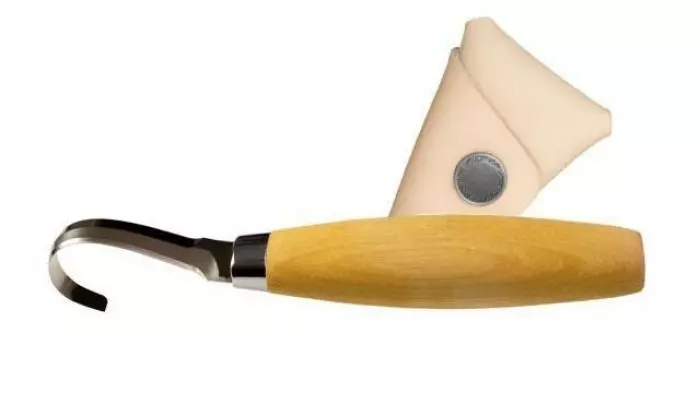 The right-handed 164 knife has a single-edge 2.2” blade made of 12C27 stainless steel, designed to hold an edge and resist corrosion. The blade’s internal radius is ½ inch (13 mm) . The knife’s handle, made of oiled birch wood, is well balanced and comfortable in the hand.