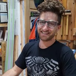 - Mayan glasses with adjustable temples have a nice, comfortable fit and are probably the most chic of the protective glasses. Protect your eyes with style. Black frame (with a sleek, modified widow’s peak shape) and frame, clear lens. Integrated nose piece.