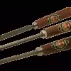 We think you will be really pleased by how easy to sharpen and maintain these irons are, and of course what a great edge you will get. The bench plane irons are all around 0.115″ thick and the block plane irons are about 0.100″. The extra thickness over a standard Stanley iron also translates into superior performance. Made in England.