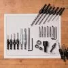 MiS did a kindness and provided just the Tapered Drill Element to their Tapered Drill Countersinks, so if you wear out the drill, you don’t have to buy the whole piece again. Just back out the set screw on the 1/4″ power drive chuck and the drill slides right out. The drill element has a flat spot machined on so that you get perfect registry when installing the new bit.