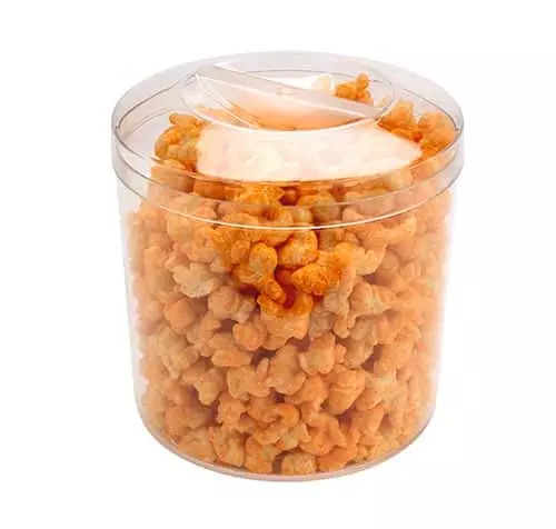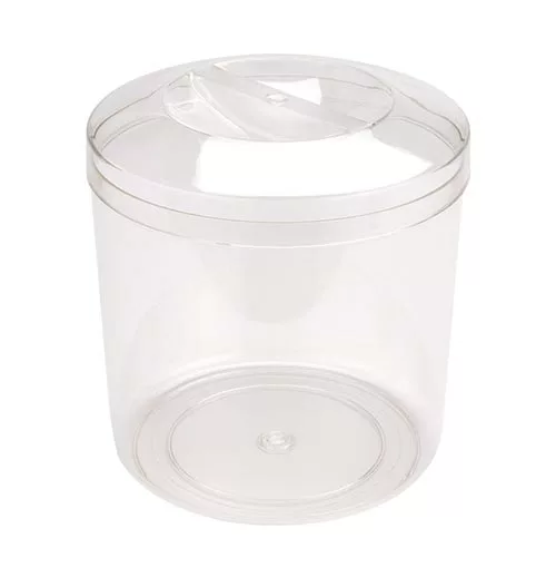 This round plastic container is made from crystal clear high quality, food grade polystyrene. It has a capacity of 206 oz. Our 289C round plastic Container has an overfit lid with fingertip grips. The 289C round plastic container can be used for food services, kitchen & food storage, candy & nuts, sustainable packaging, arts and crafts, or office storage.