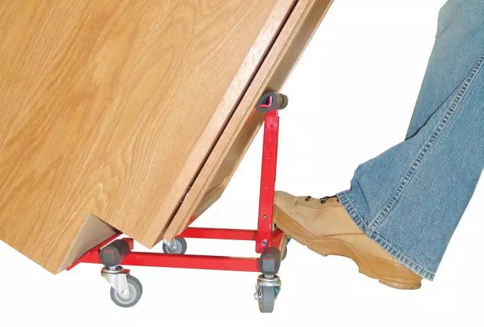 The dolly is perfect for tight quarters since it has such a tiny profile. It can also be used as a flat dolly. FastCap has improved the original design and now the dolly’s 4 wheels can move in any direction. Once you’re done, the Speed Dolly folds down to 13.5″ x 14.5″ x 3.5″. Weight capacity is 250 lbs.