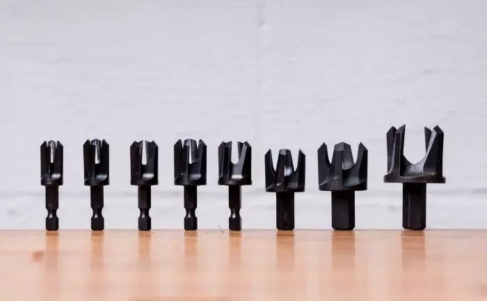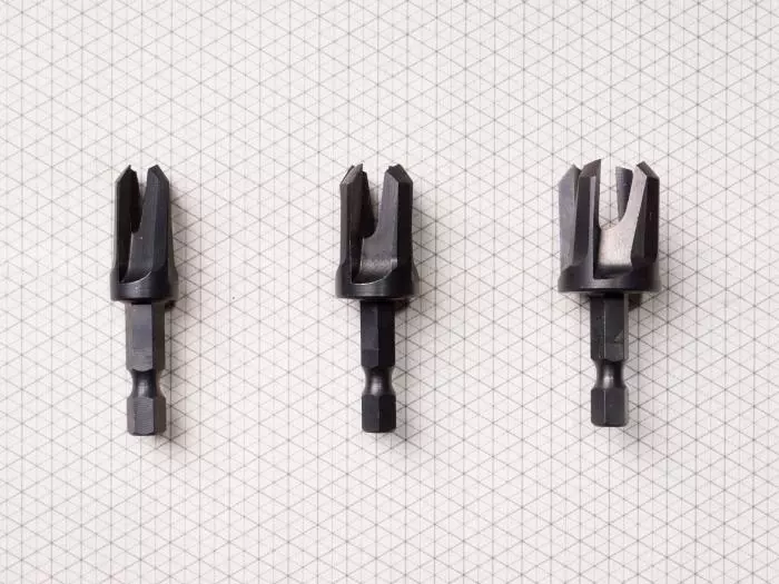 Plug sizes under ¾” have 1/4″ power drive chucks and can be used the MiS Quick Change chuck, while the ¾” and 1” plug cutters have a more robust 7/16” shank.