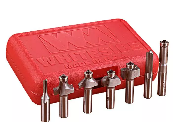 The Whiteside 402 Basic Router Kit also consists of seven superb, premium carbide router bits that you’ll reach for again and again, but their shank is 1/4″: 1/4″ and 1/2″ straight double flute bits; 1/2″x 1” flush trim bit; a 3/8″ roundover bit and its opposite 3/8″ cove bit; 1/2” rabbeting bit; and a 45° chamfer bit. All the bits have a 1/4″ shank.