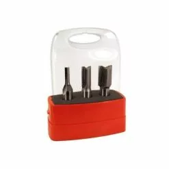The 3 piece set consists of the following straight 2-flute dado bits: 7/32” (¼” plywood), 15/32” (½” plywood); 23/32” (¾” plywood). All the bits have a 1/2″ shank.