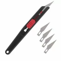 Comes with a No.11 blade in the handle & five additional No.11 hobby blades in plastic tube.